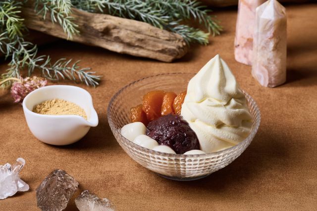 2017年実施のコラボ企画で、期間限定販売されました。みはし自慢の北海道産の粒あんをベースに杏4枚、白玉4粒に濃厚なソフトクリーム。さらに別皿のきなこをかけて味の変化を楽しみます。