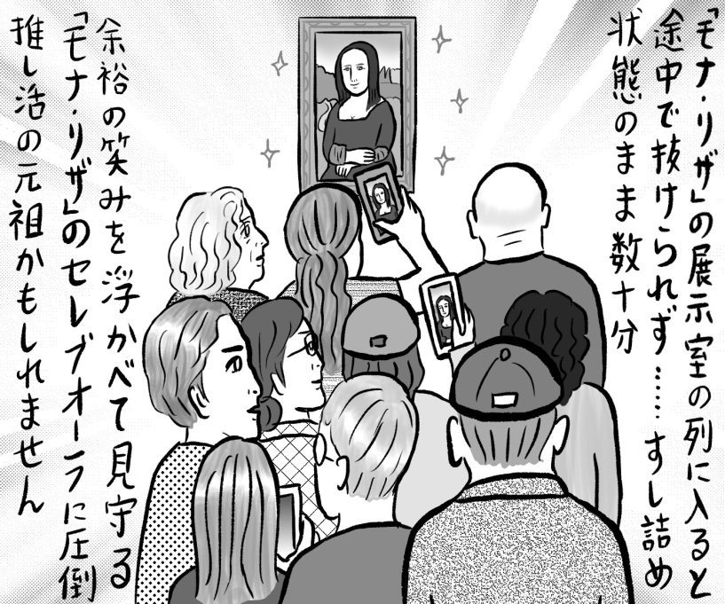 うつろいやすい世の中で、変わらない人気を保ち続けられるセレブなんているのでしょうか? もしかしたら、それはテイラー・スウィフトでもキャサリン妃でもなく、ある商人の妻・・・。先日、はじめてのヨーロッパ旅行でルーヴル美術館を訪れました。サモトラケのニケやミロのヴィーナス、フェルメールやドラクロワの絵画など珠玉の芸術作品がひしめいています。もとは国王のお城だったというゴージャスな館で、一番の主役なのは「モナ・リザ」。館内を歩いていると、モナ・リザはこちらです、と示す看板を度々目にします。レオナルド・ダ・ヴィンチが500年以上前に描いた「世界で最も有名な絵画」。その部屋にたどり着くと、他のどの部屋よりも混んでいて、200人位の人々がすし詰め状態になっていました。1列が約20人でじわじわ進んでいき、じっくり眺めて撮影したあとに横にはける、という流れです。